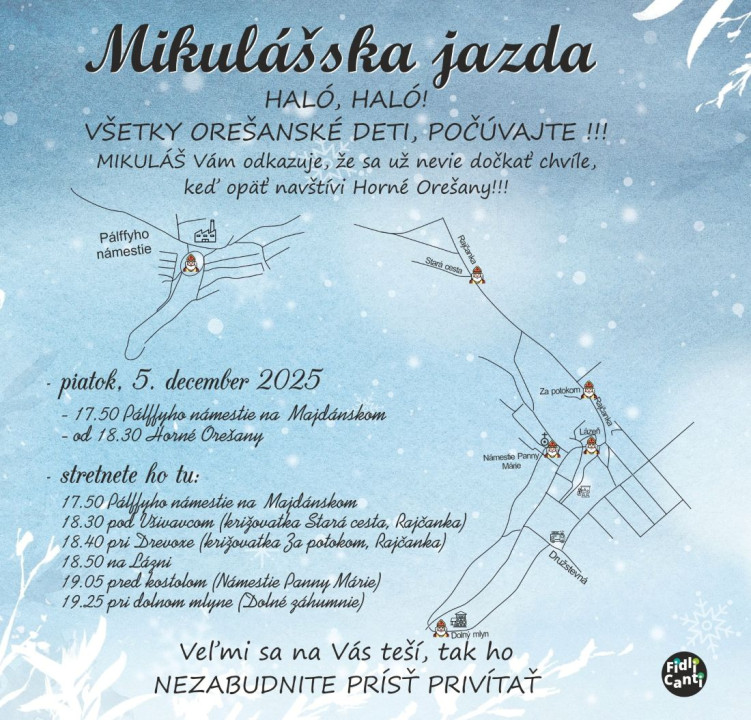 Príde v piatok 5. decembra 2025 od 17.50 bude chodiť po Horných Orešanoch.