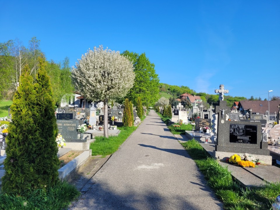 V týchto dňoch prebieha v našej obci kosenie zelených plôch cintorína a aj uličiek medzi hrobmi.