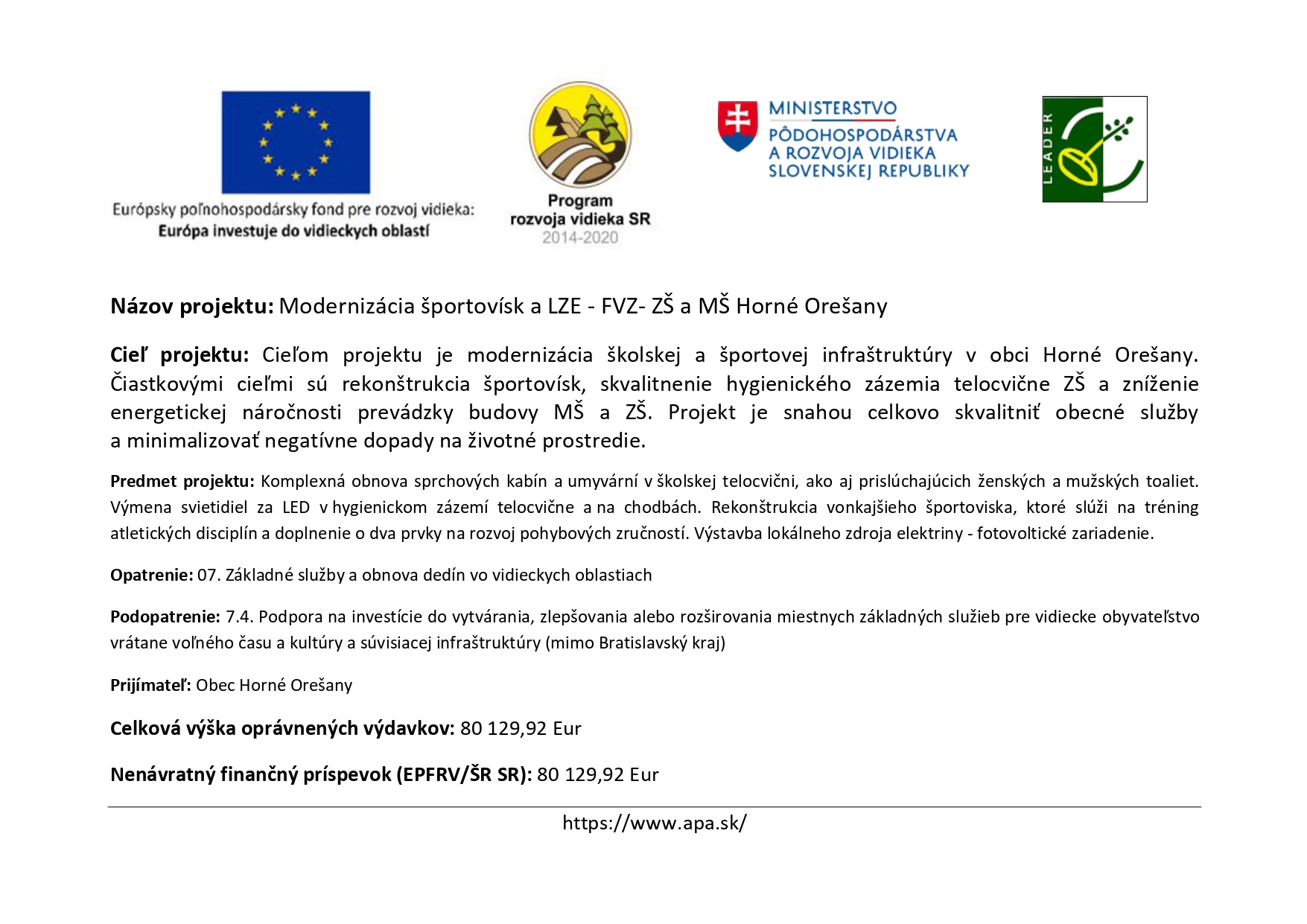 Názov projektu: Modernizácia športovísk a LZE - FVZ- ZŠ a MŠ Horné Orešany
