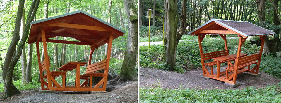 Obr. 10. Nový altánok pri Husom stoku (vľavo) a na rázcestí Jágerka (vpravo)